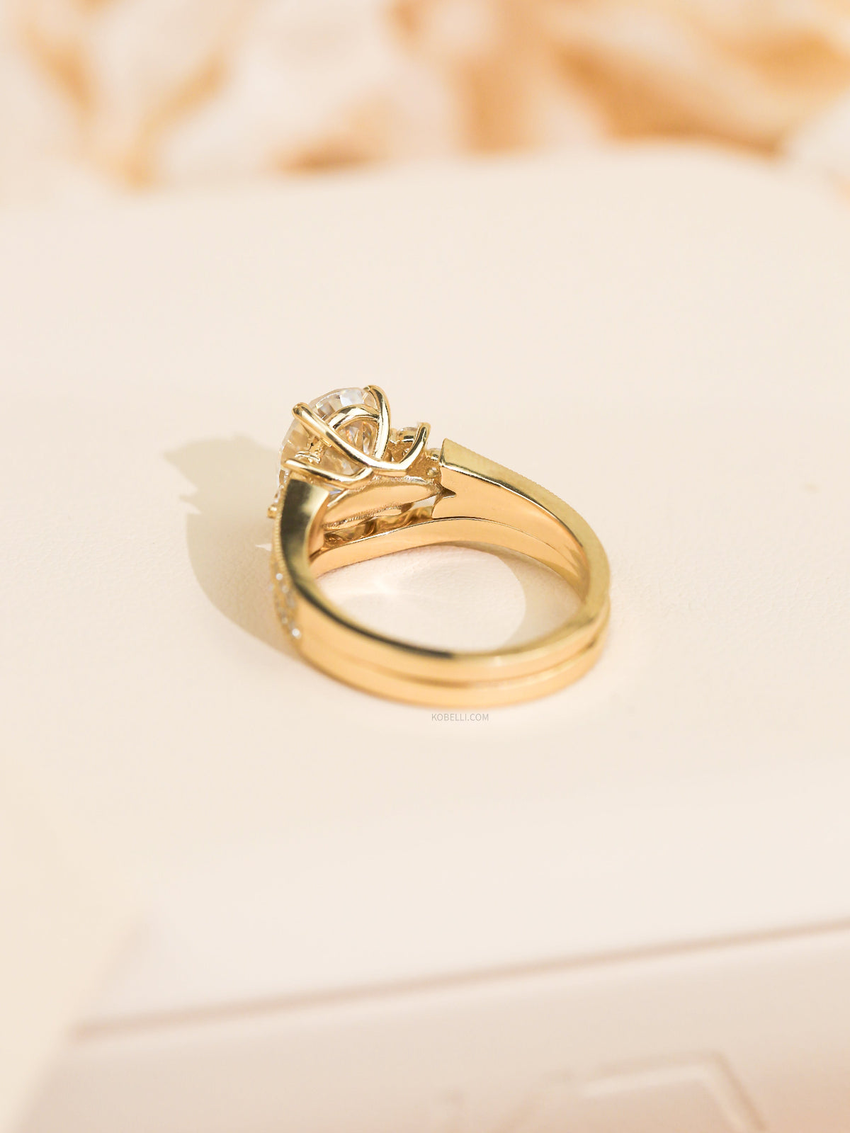 Accompanying this breathtaking engagement ring is a curved wedding band, completing the wedding rings as a bridal set.
