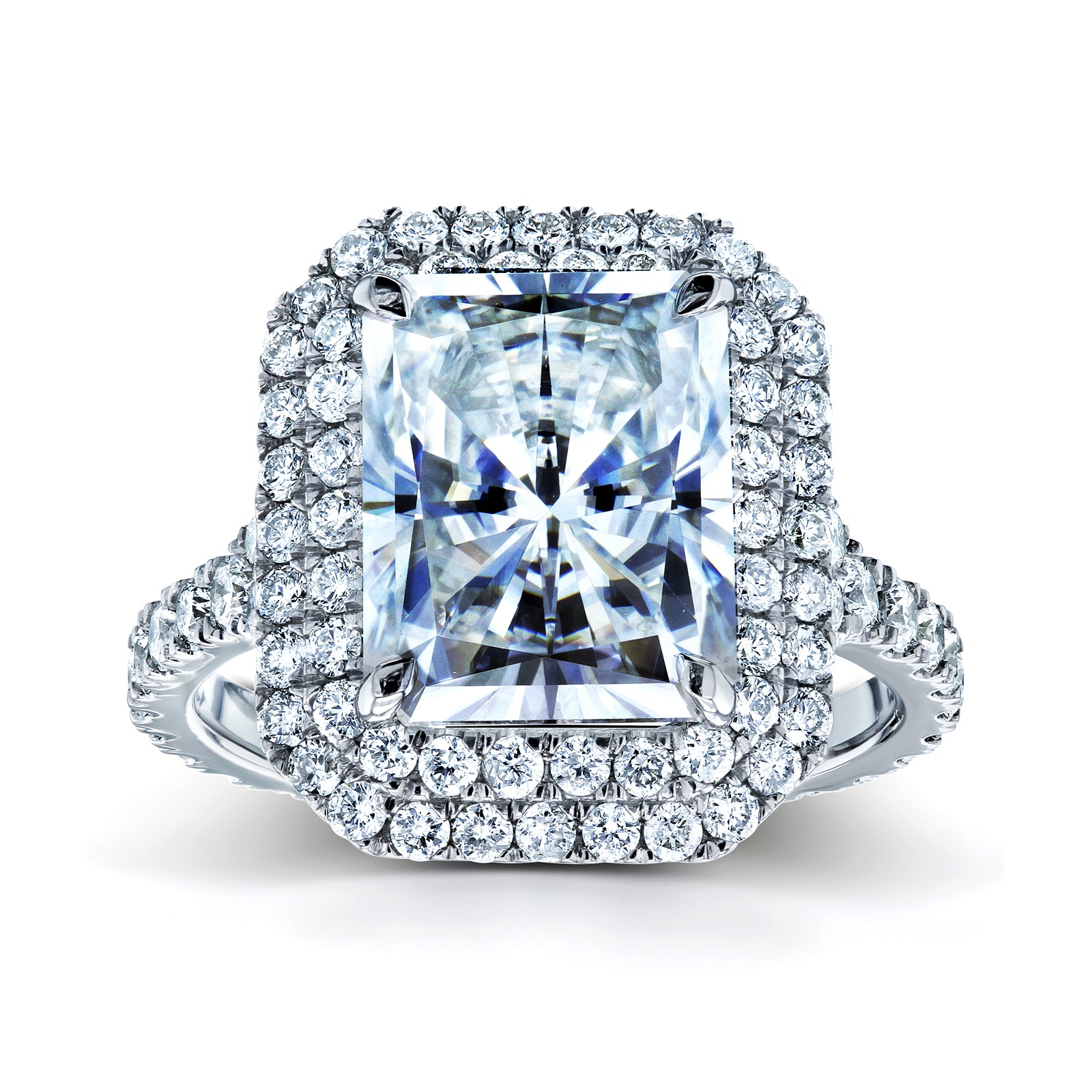 Large Radiant Double Halo Moissanite and Diamond Ring