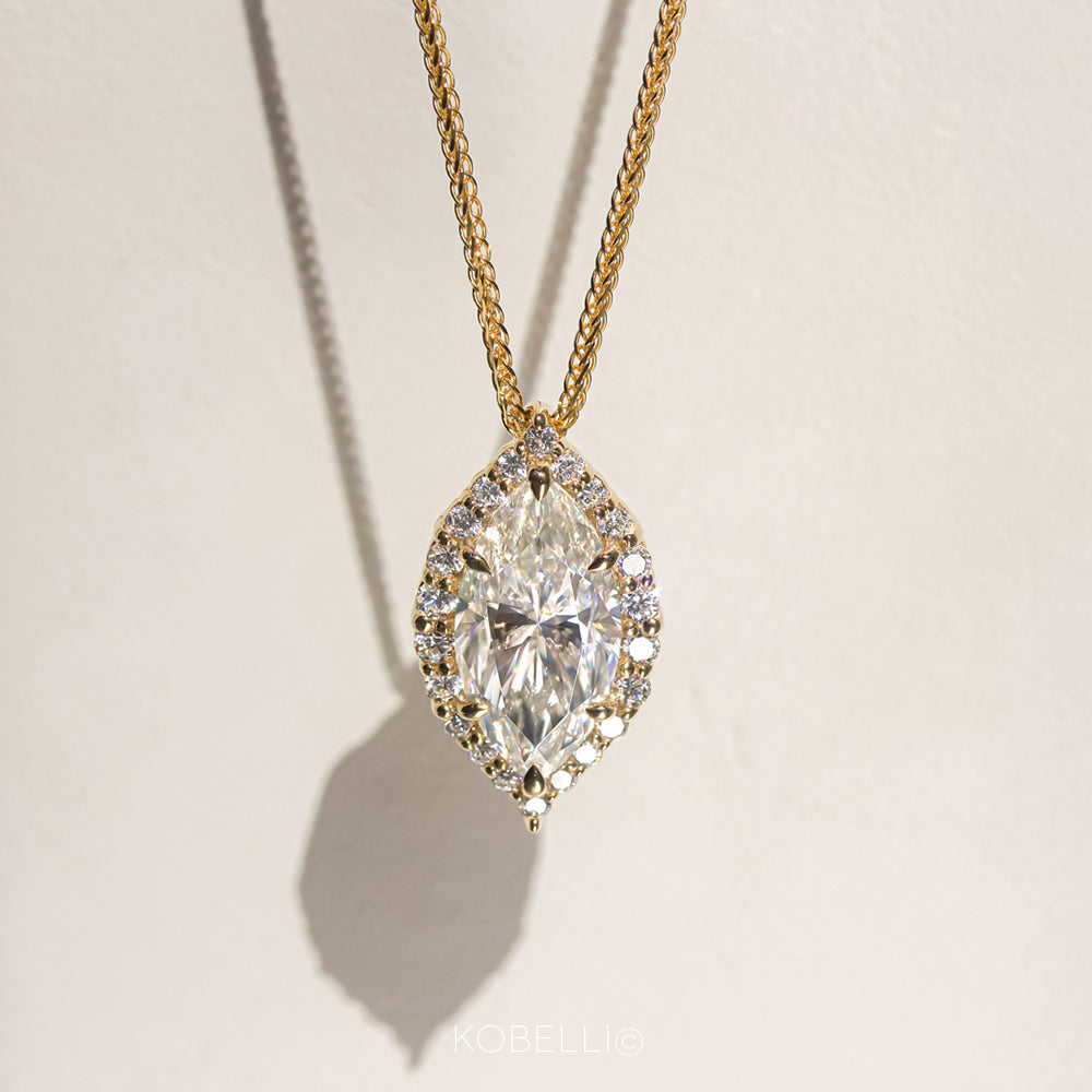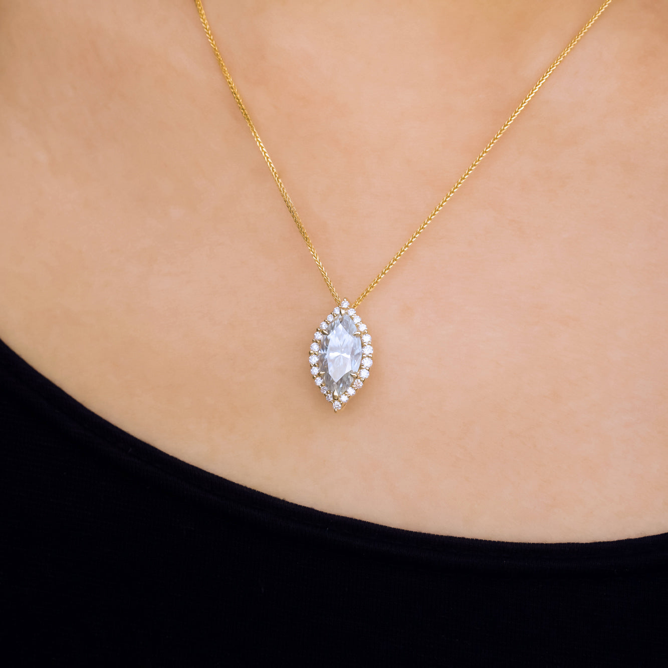 Margaux Necklace - 3-1/8ct.tw Marquise Moissanite with Lab Grown Diamond Halo Pendant and Chain