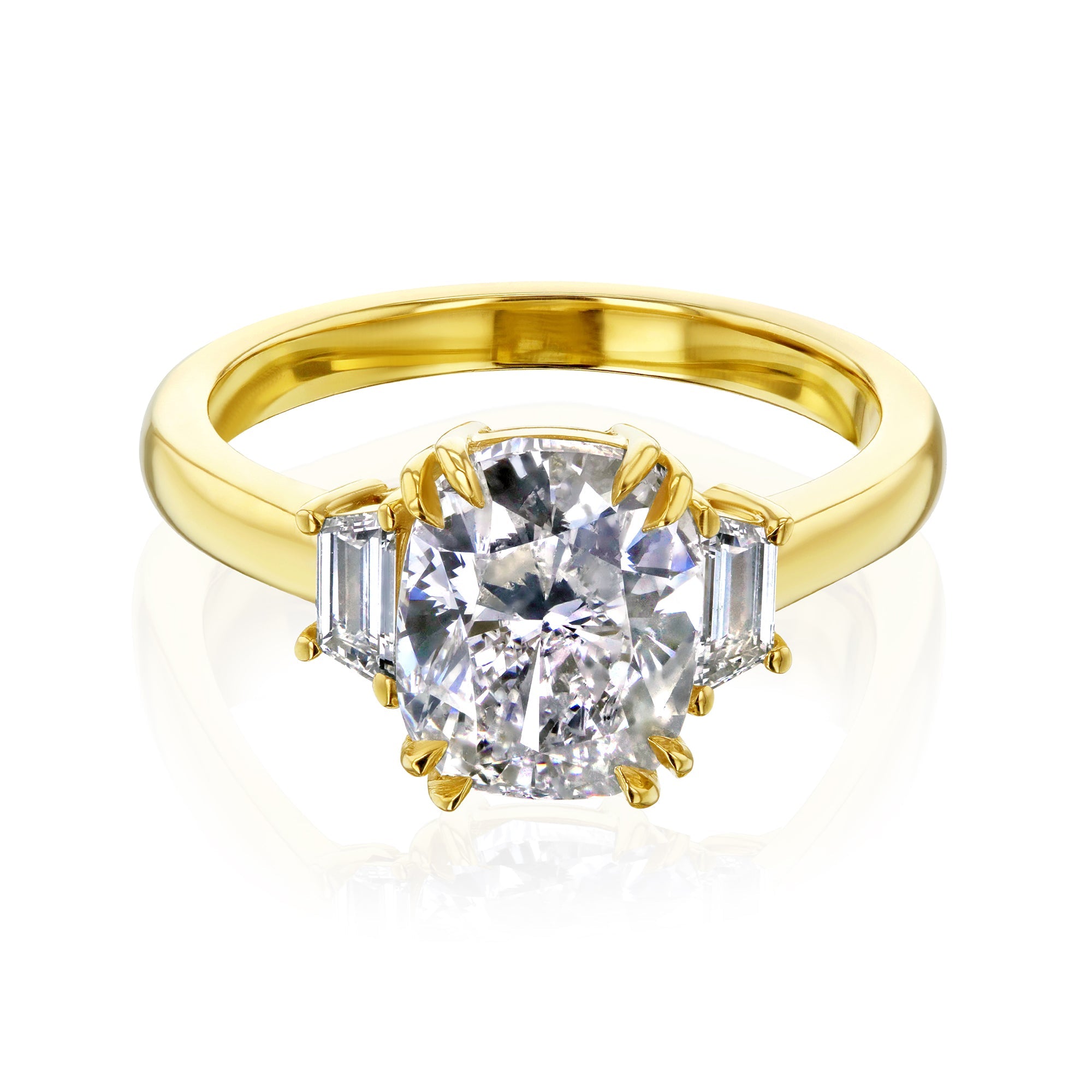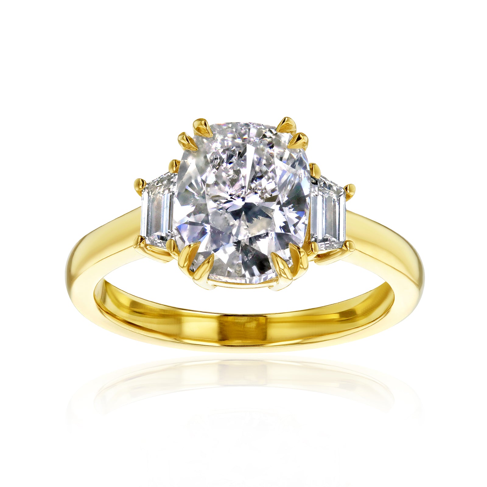 3.02ct Cushion Center + 0.30ct.tw Trapezoid Diamonds