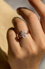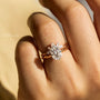 Modern bohemian fashion with high class materials come together on this all-natural diamond and rose gold ring. This free-spirited look is styled into a high-class luxury piece featuring a clean band and chic diamond cluster.