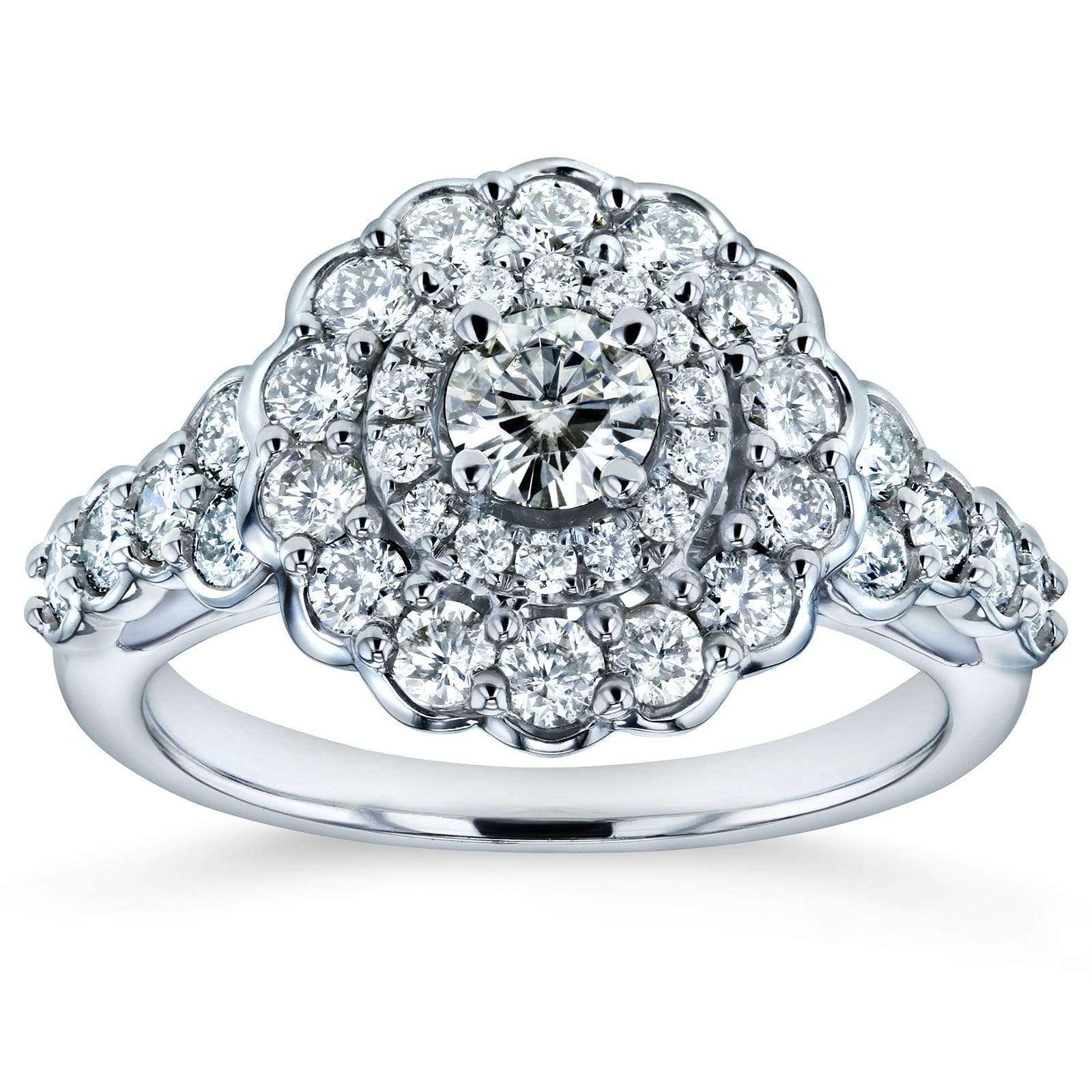1 Carat Moissanite & Natural Diamond Cluster Rosetta Ring