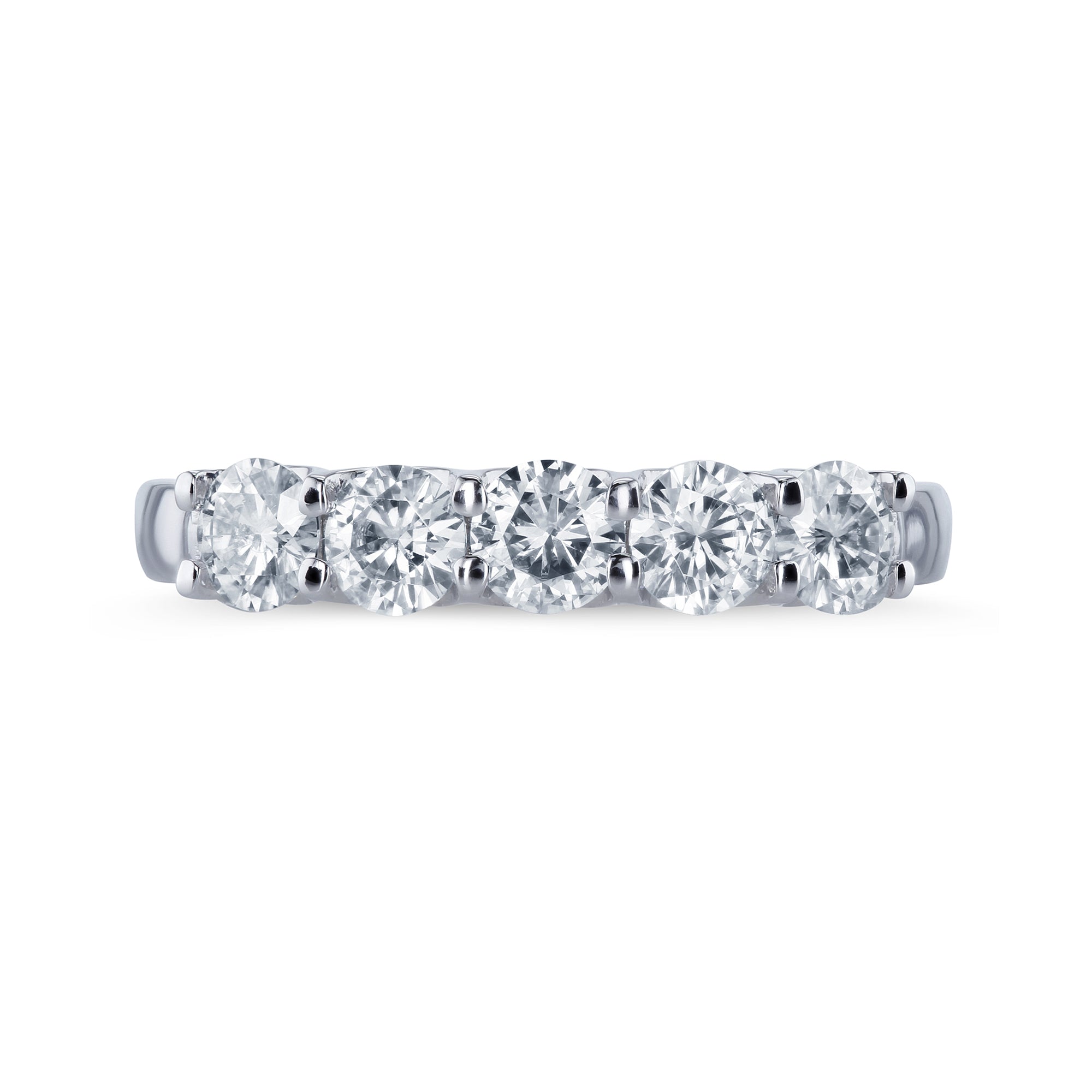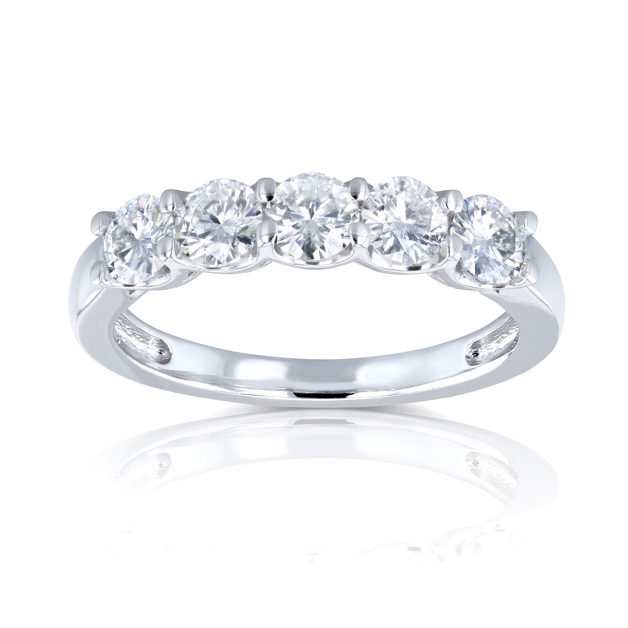 Five Stone 4/5 Carat TGW Round Brilliant Colorless Moissanite Bridal Wedding Band in 14k Gold (DEF/VS)