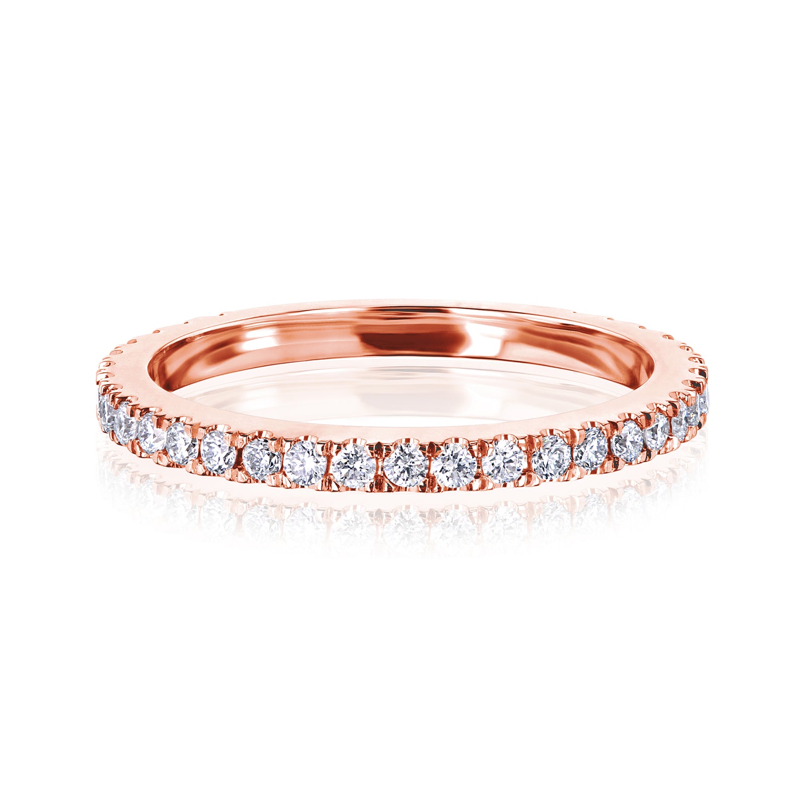 Thirty-two lab grown diamonds trace the perimeter of this 14k gold ring in small split prong settings.