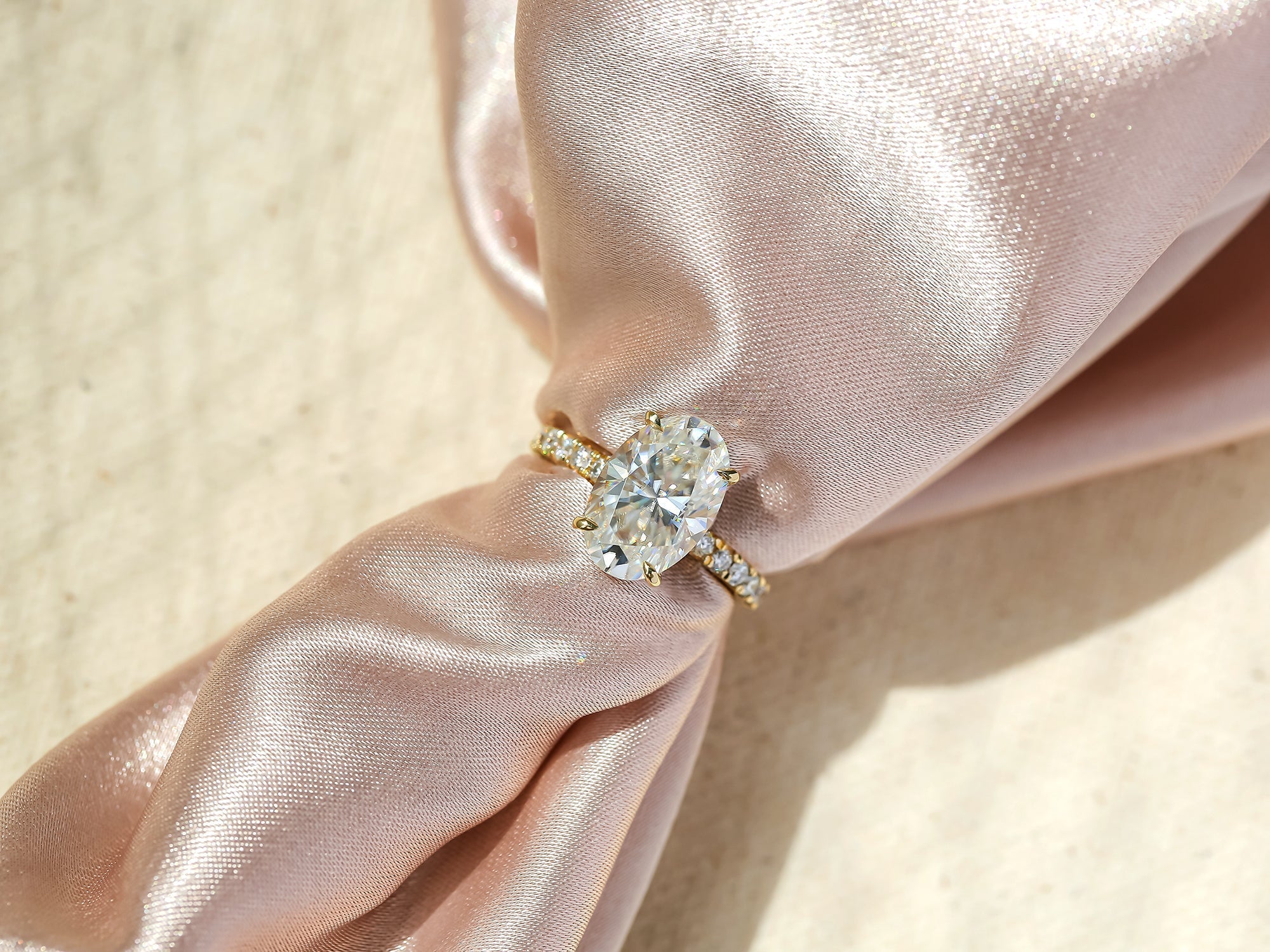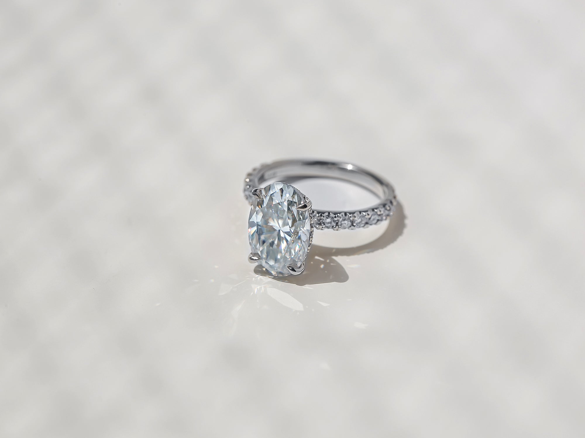 All-Diamond Lab-Grown Oval Hidden Halo Engagement Ring