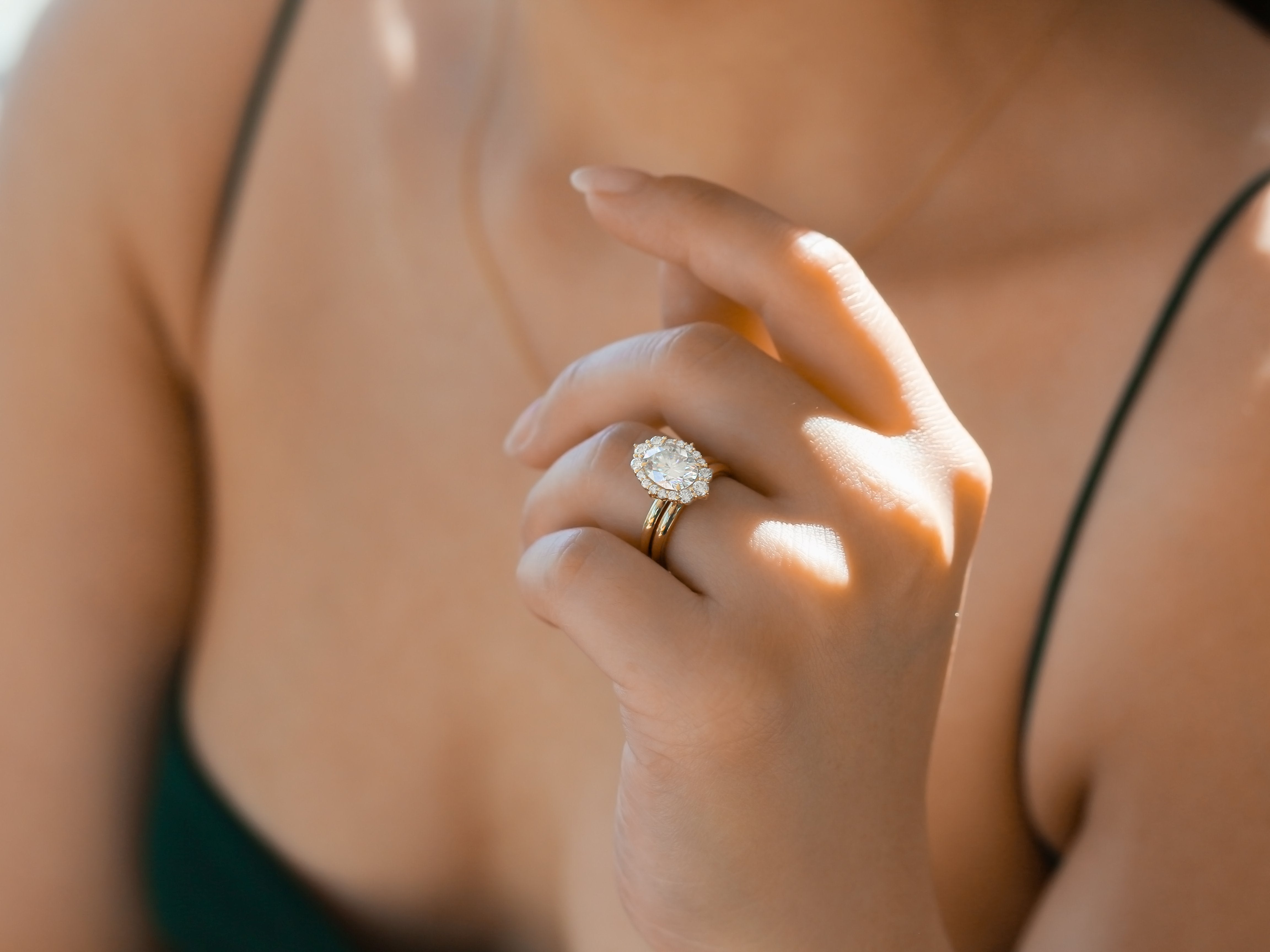 Ophelia Bridal Set - Oval Moissanite with Lab-Grown Diamond Halo Two-Piece Bridal Set