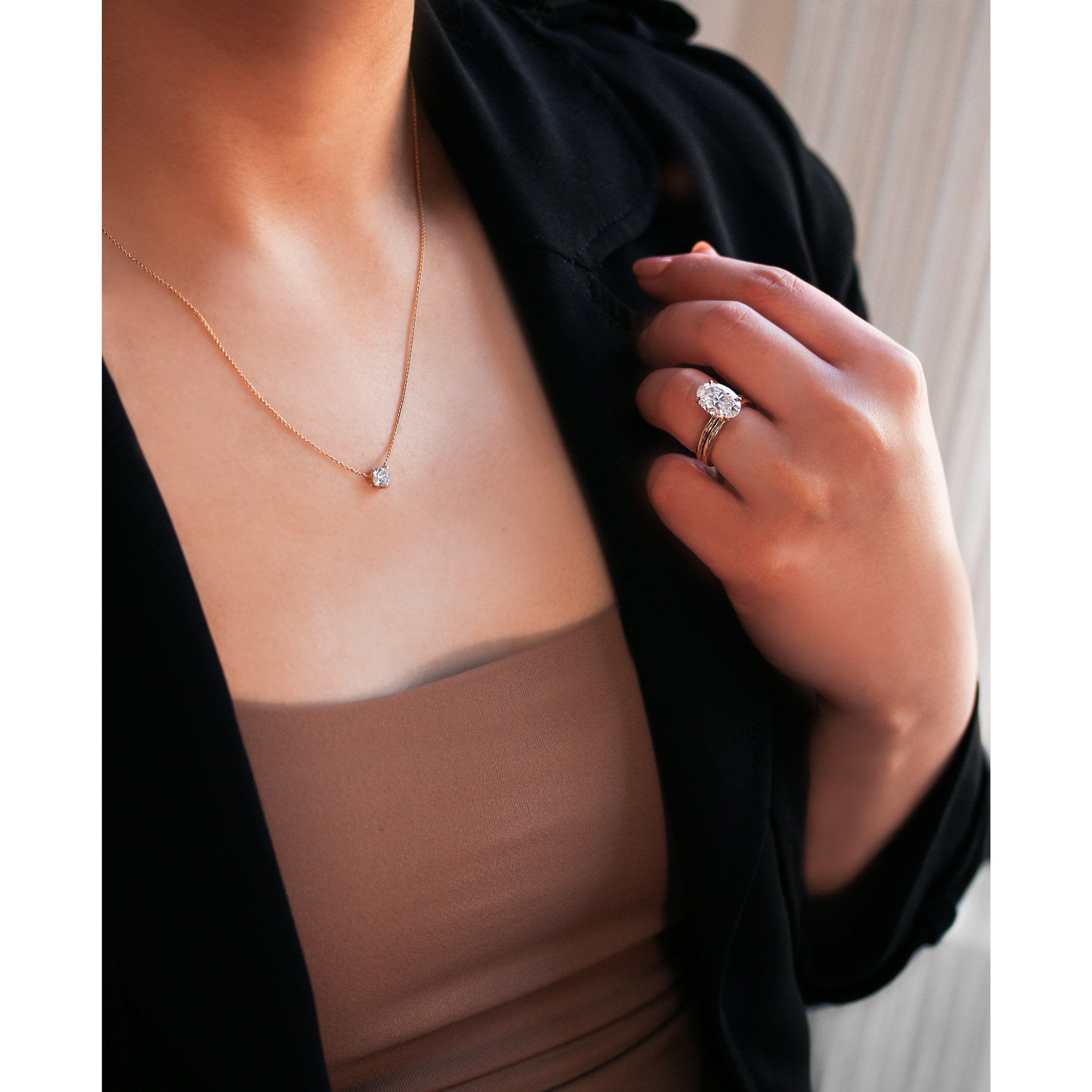 Featuring sleek and timeless pieces that transcend generations, these styles embody slim and feminine silhouettes with large show-stopping moissanite centers that represent the commitment you've promised for one another.