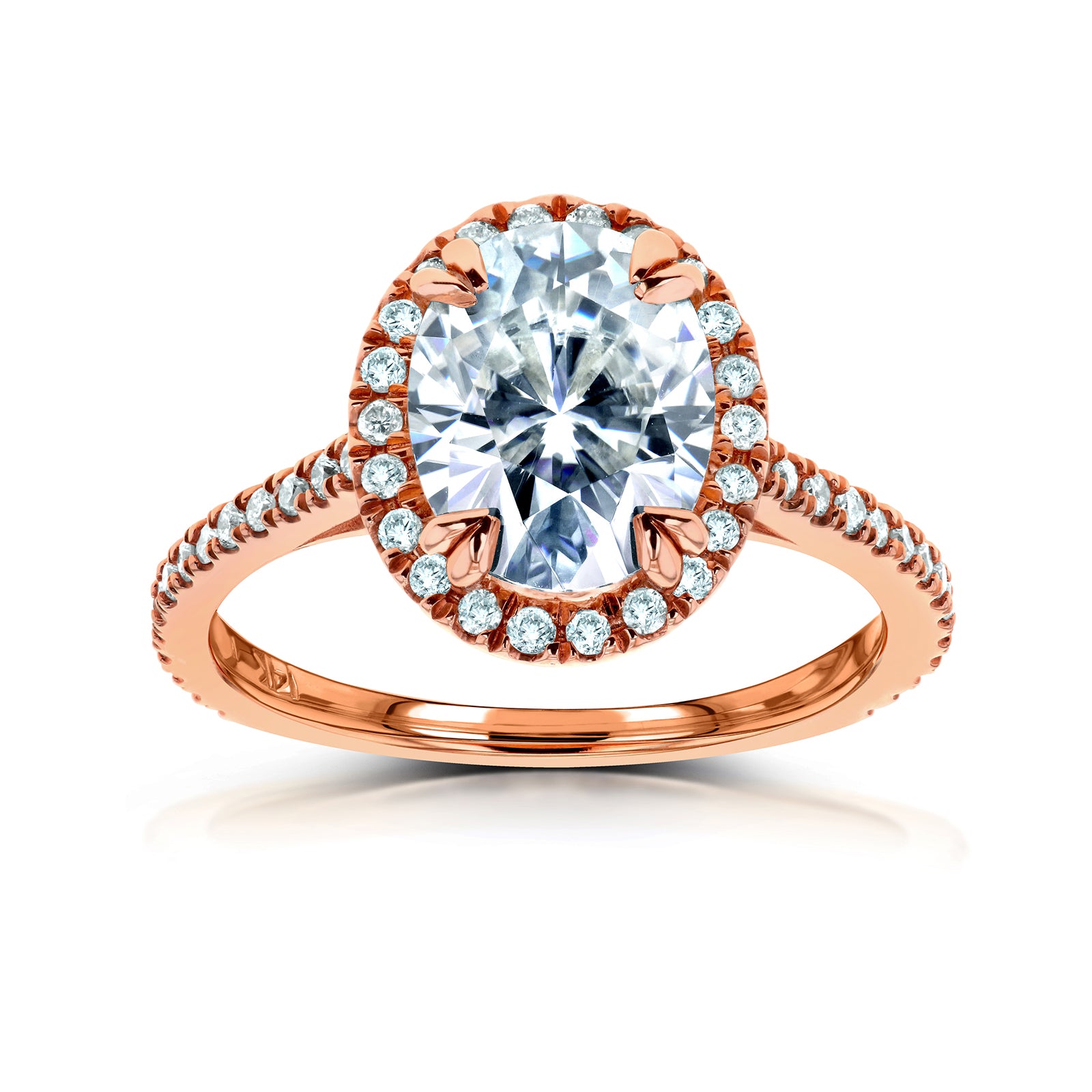 Oval Moissanite Engagement Ring with Halo Diamond 2 1/3 CTW 14k Gold