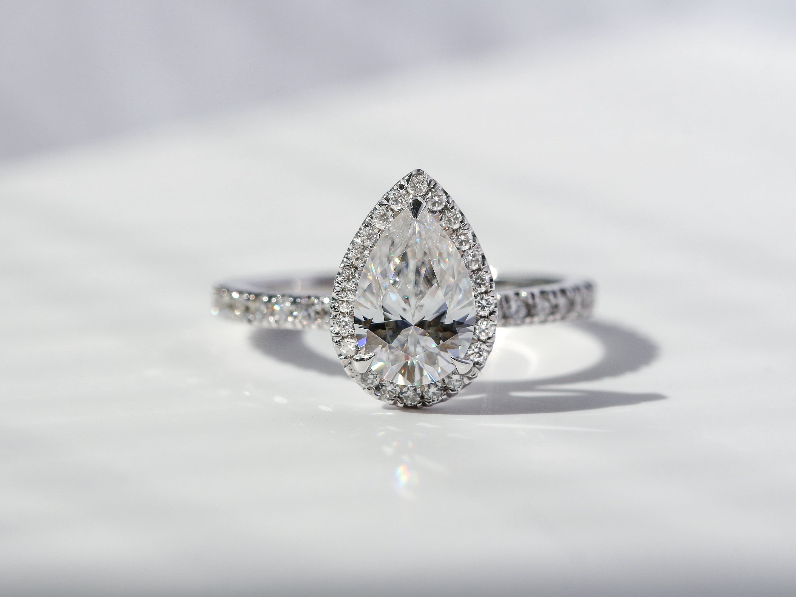 9x6 Pear Moissanite and Lab-Grown Diamond Halo Engagement Ring
