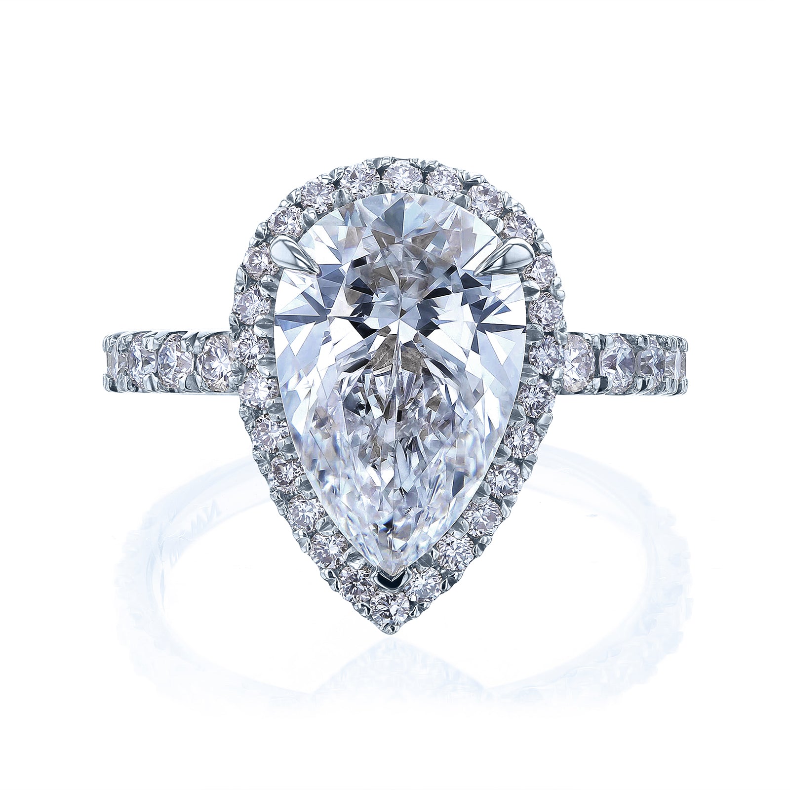 All-Diamond Lab-Grown Pear Halo Engagement Ring