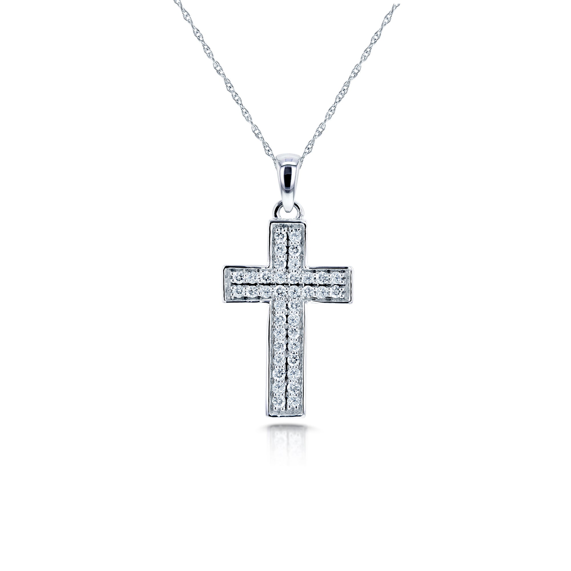Pavé Diamond Cross Necklace 3/8 Carat (ctw) in 10k White Gold (18" Chain)