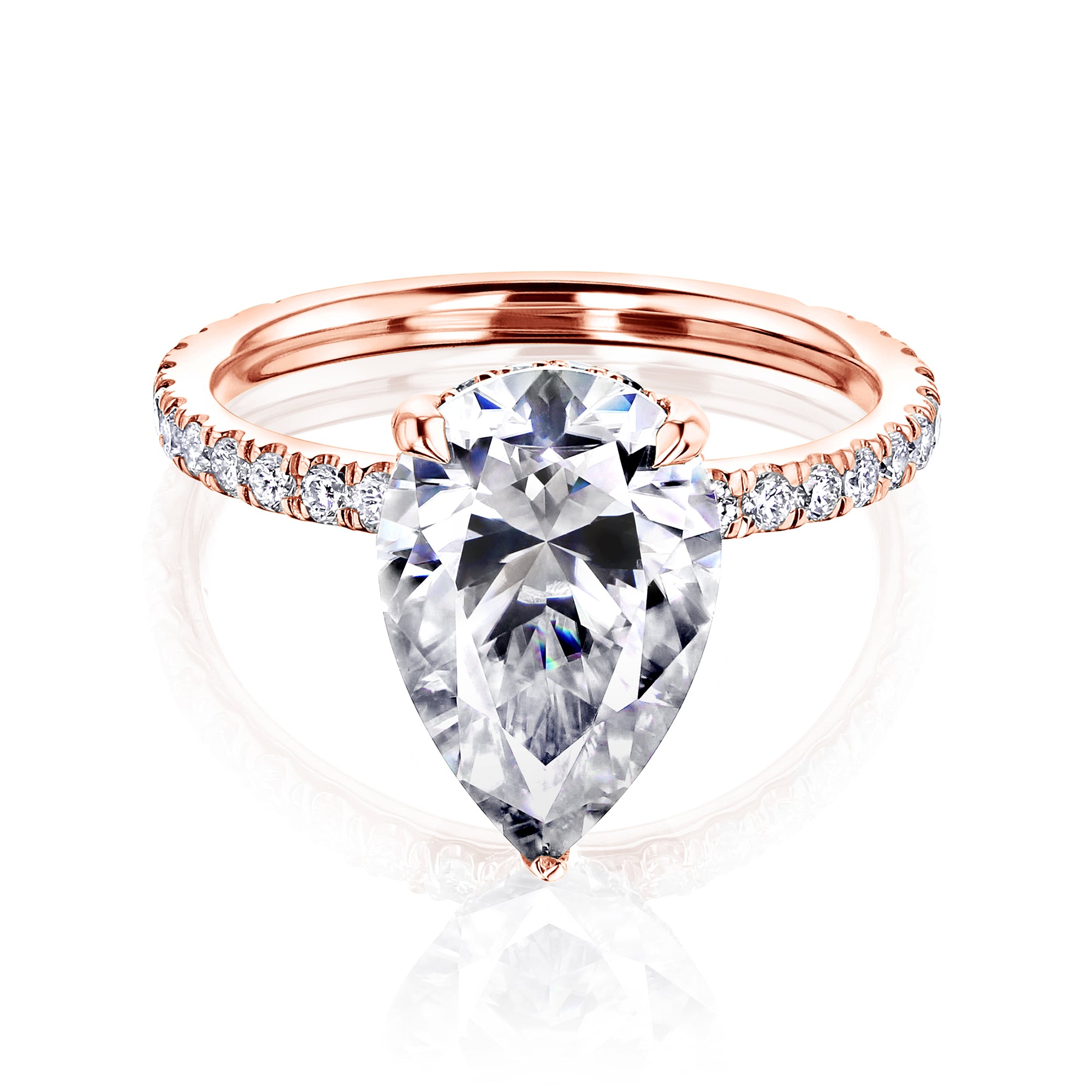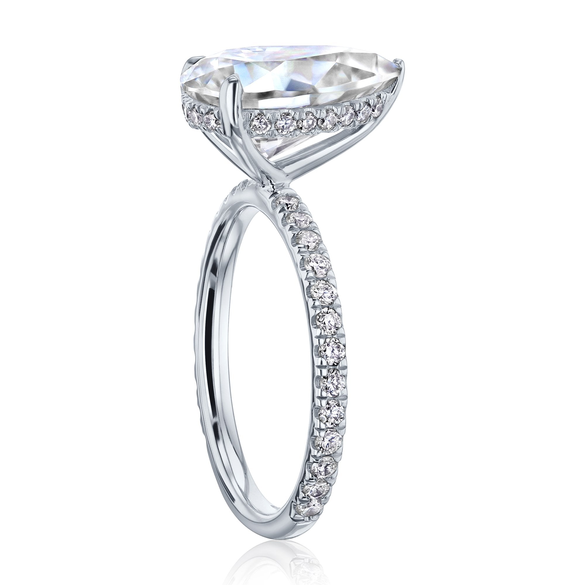 Payton 12x8 – Pear Moissanite with Lab-Grown Diamond Hidden Halo and Pavé Engagement Ring