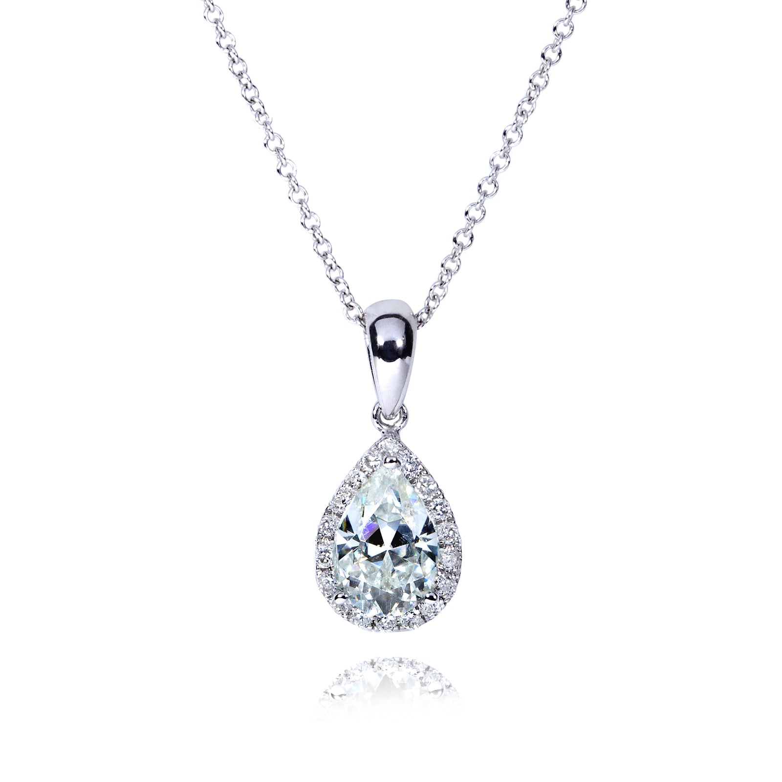 Pear-Shape Moissanite (9mm x 6mm) & Diamond Necklace 14k Gold