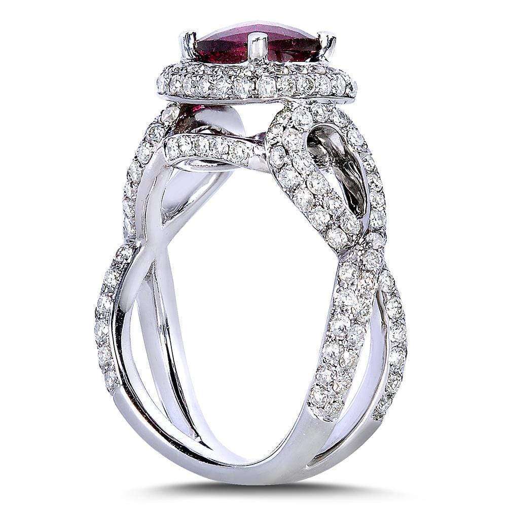 Magenta Pink Tourmaline and 1 2/5ct TDW Natural Diamond Ring in 14k White Gold