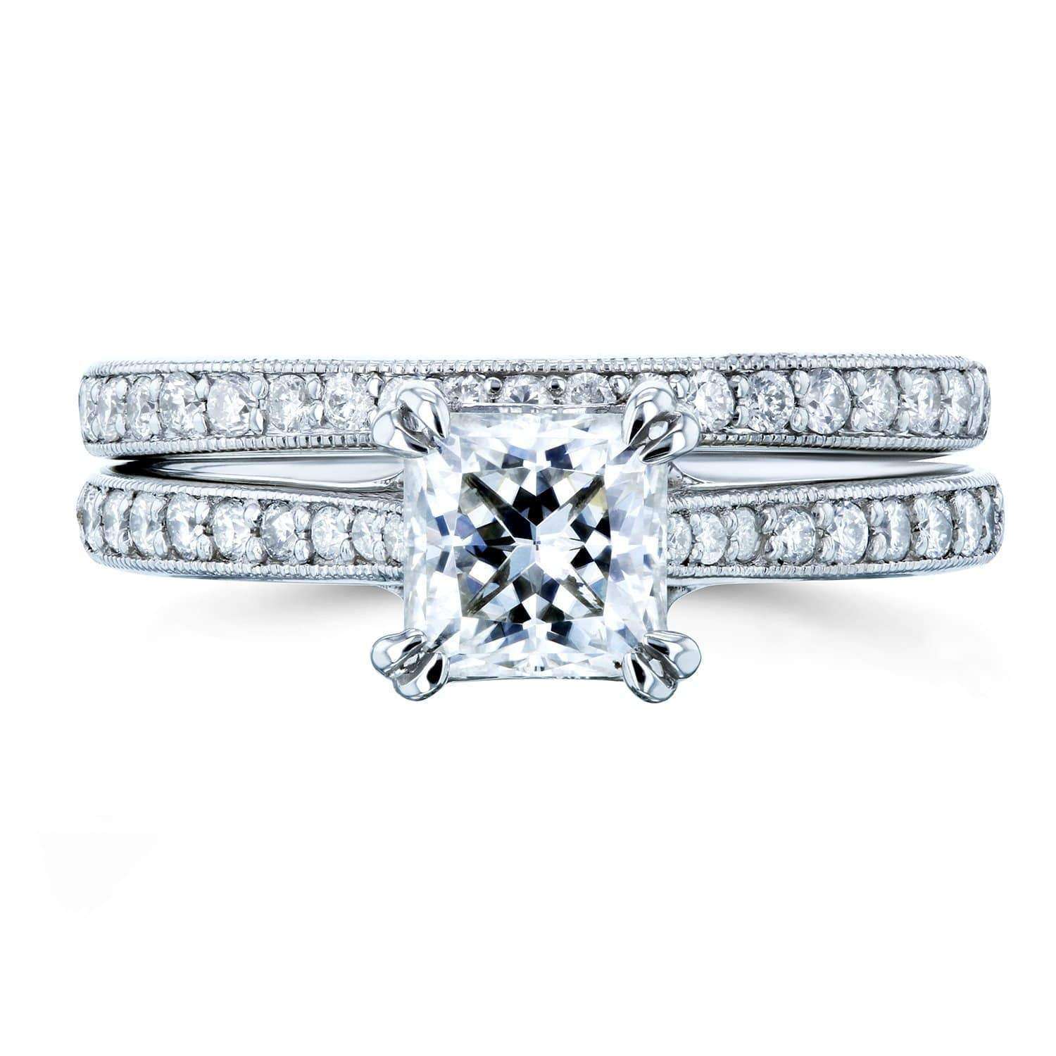 Princess Moissanite and Diamond Square Shank Trellis Wedding Rings 1 1/3 CTW 14k White Gold (GH/VS)