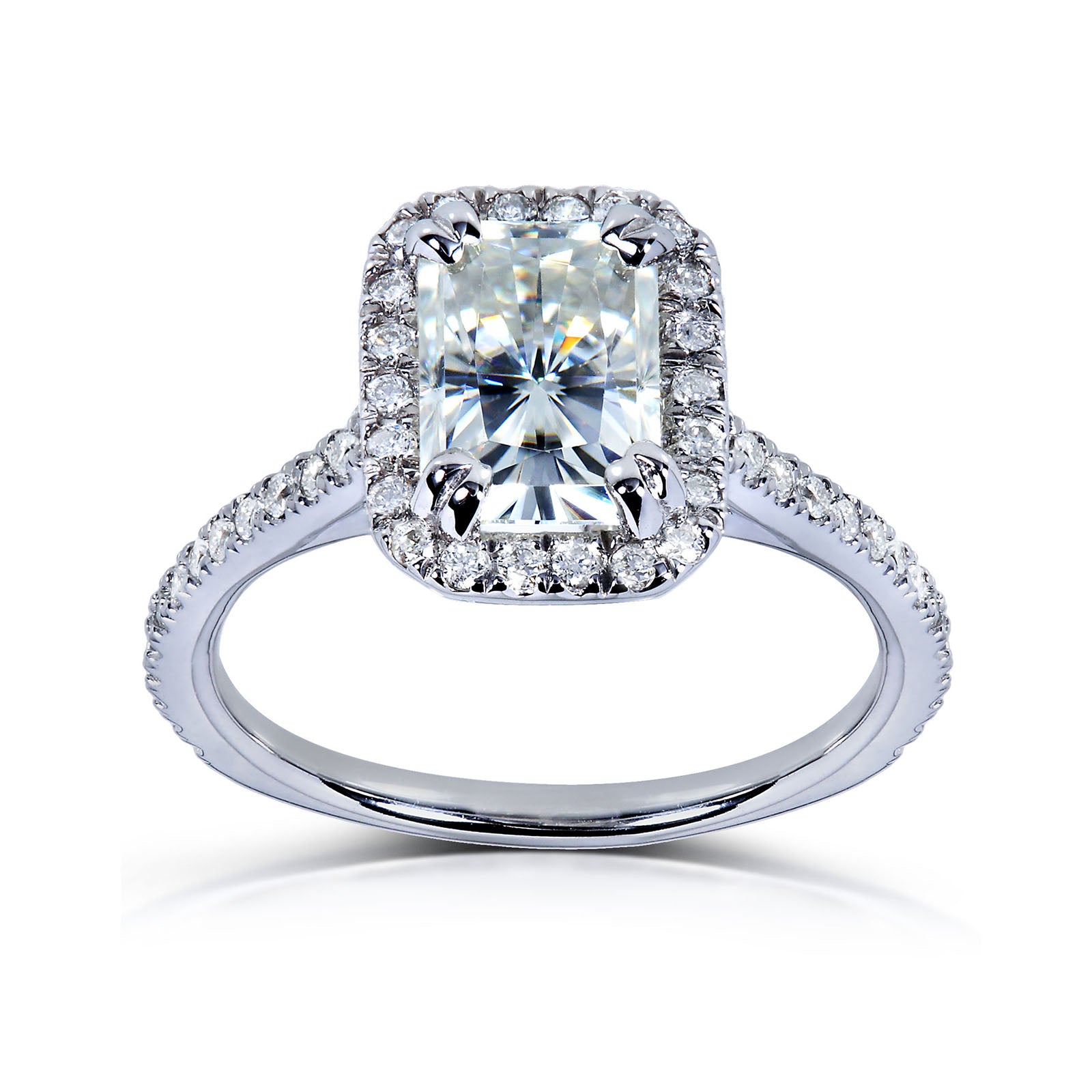 Radiant-cut Moissanite Engagement Ring with Diamond 1 2/5 CTW 14k White Gold