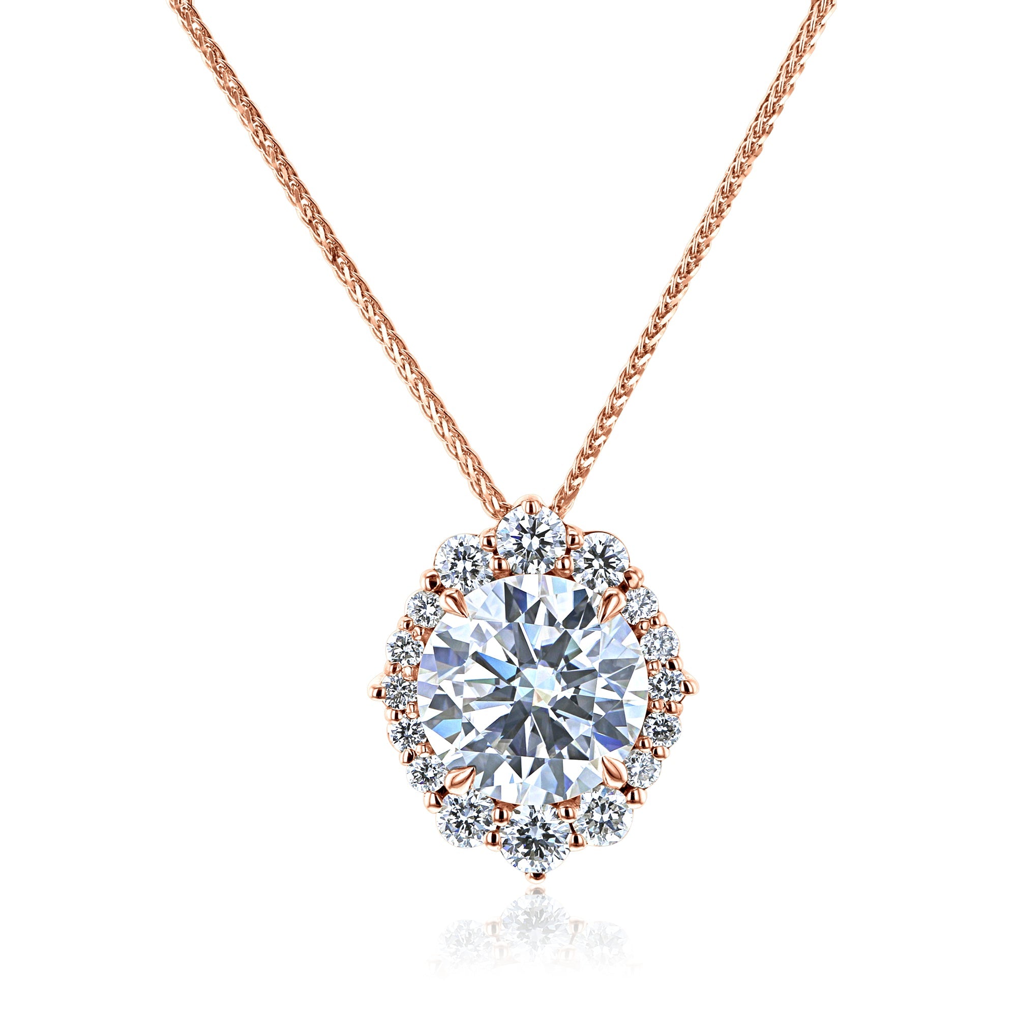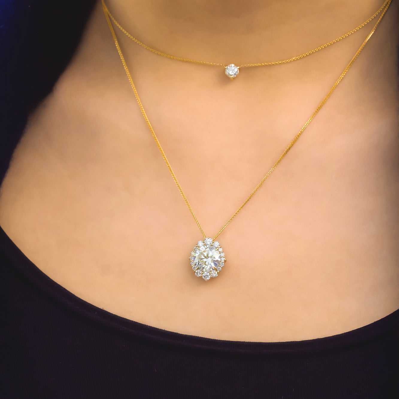 Raphaela Necklace - 3-3/4ct.tw Round Moissanite with Lab Grown Diamond Halo Pendant and Chain