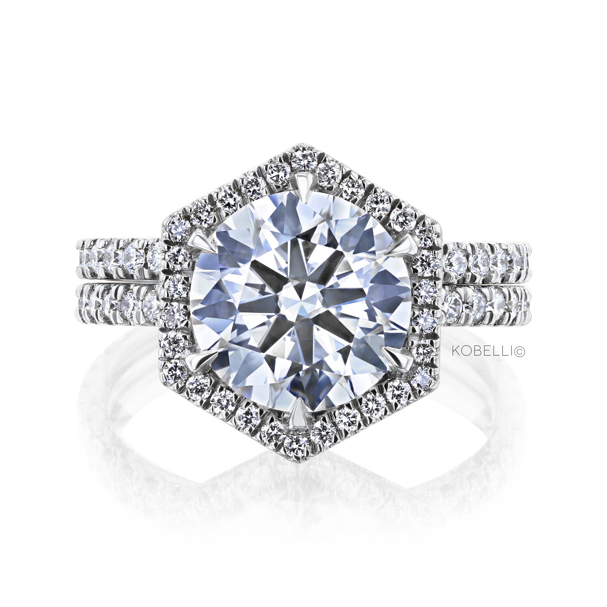 Geometric fashion is gracefully illuminated by lab-created white gemstones on every ring of our Art Deco bridal collection, Saturday.