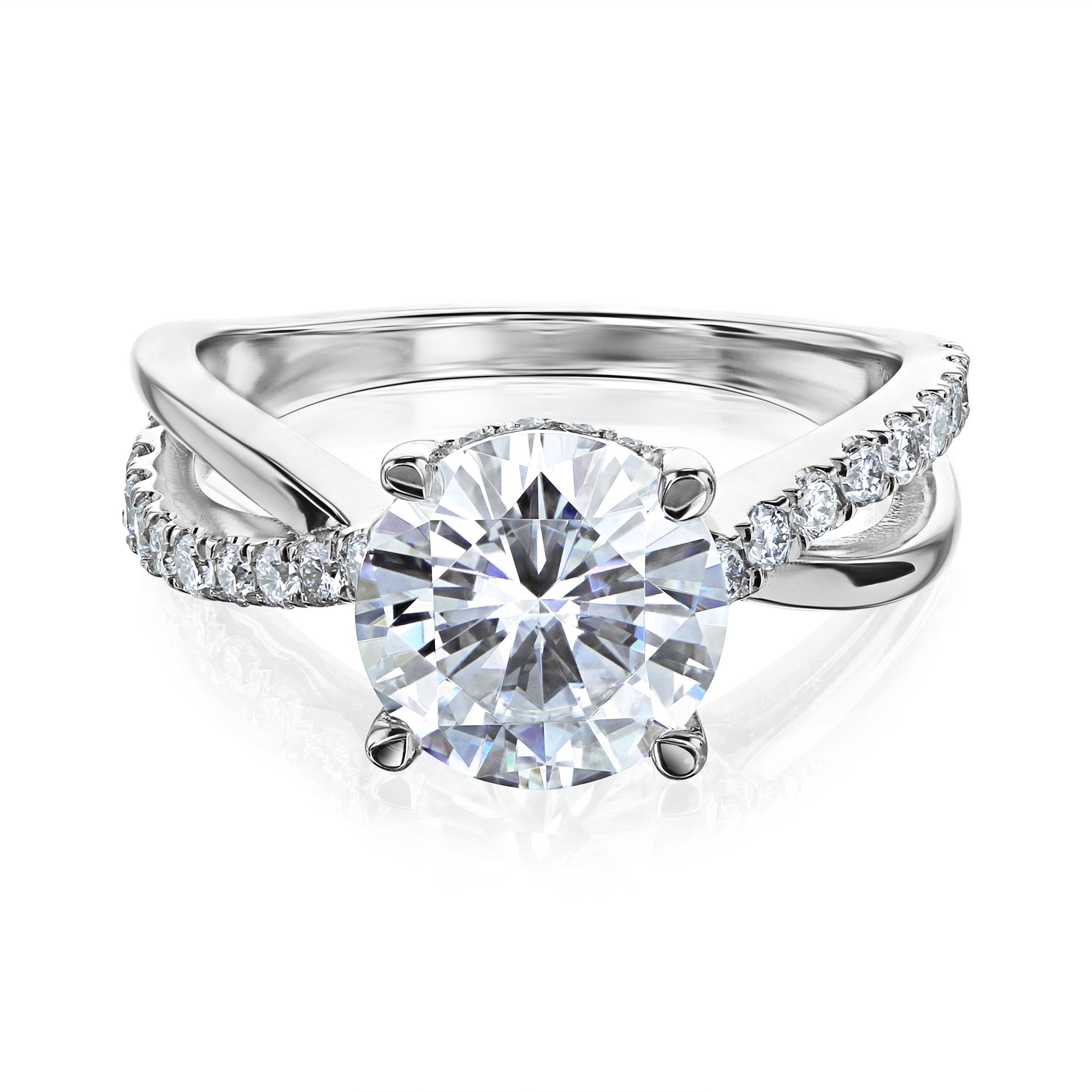 2-1/3ct.tw Round Moissanite with Lab-Grown Diamond-Accented Bypass Engagement Ring