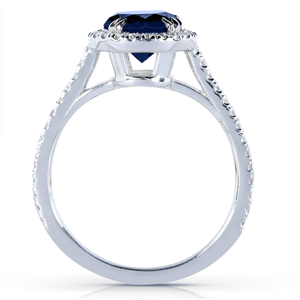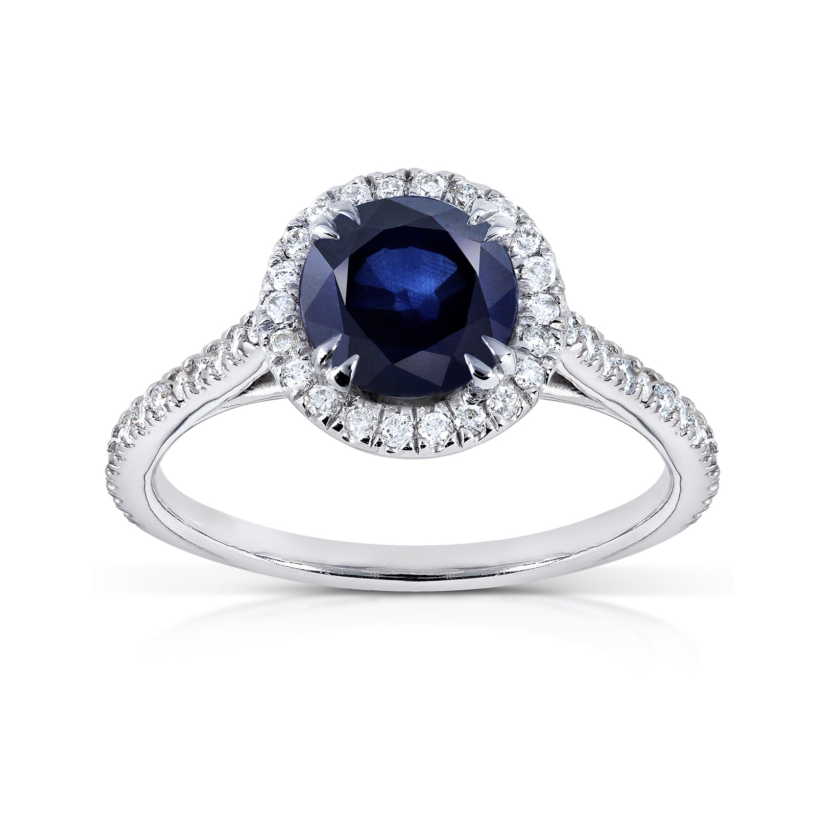 Round Blue Sapphire Diamond Halo Engagement Ring 1 1/2ct (ctw) in 14k White Gold