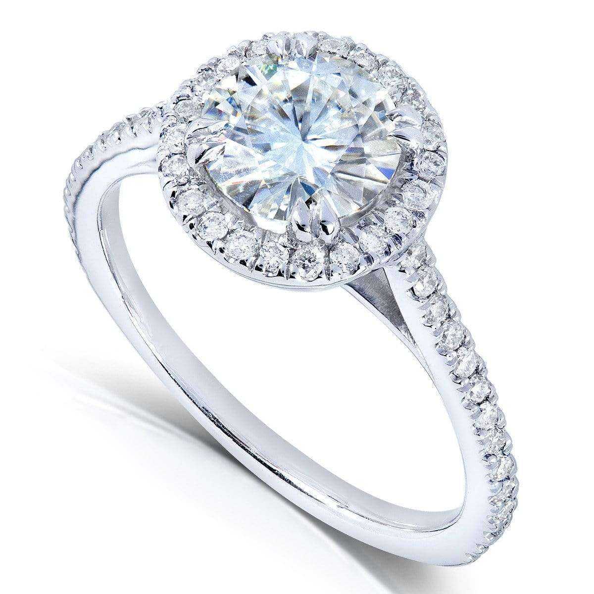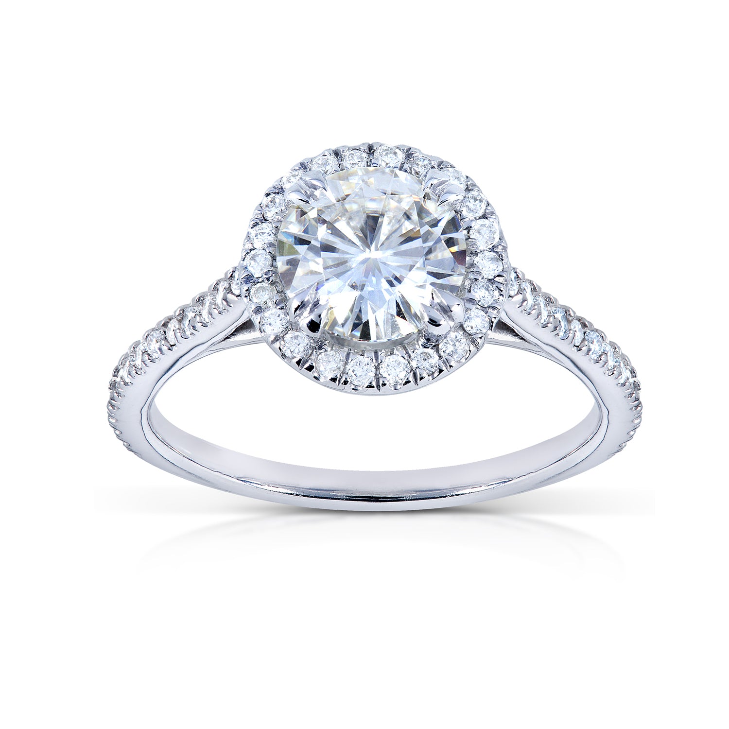 Round-cut Moissanite Engagement Ring with Diamond 1 1/4 CTW 14k White Gold (6.5mm)