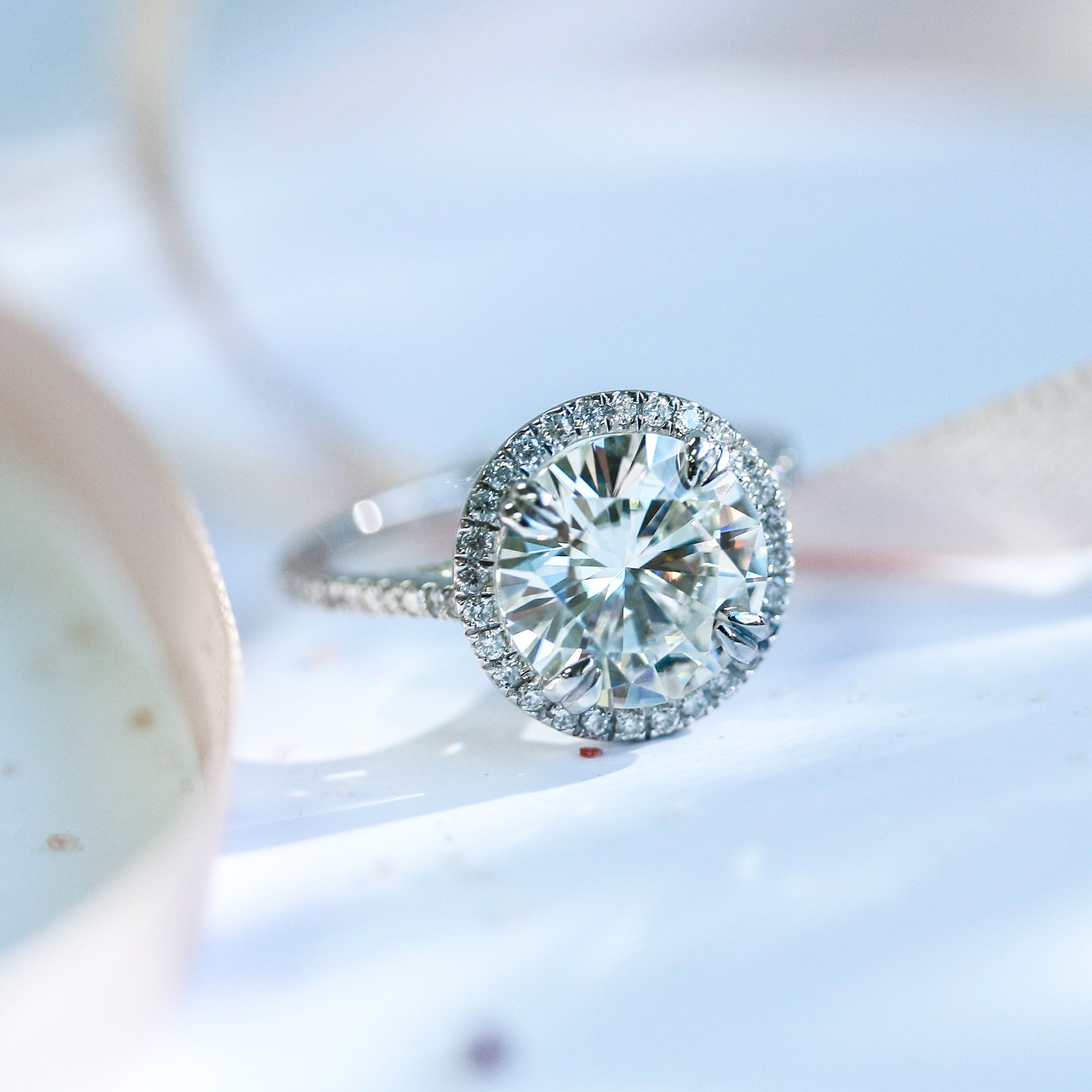 9.5mm Round Moissanite Halo Ring (3 1/3 CTW)