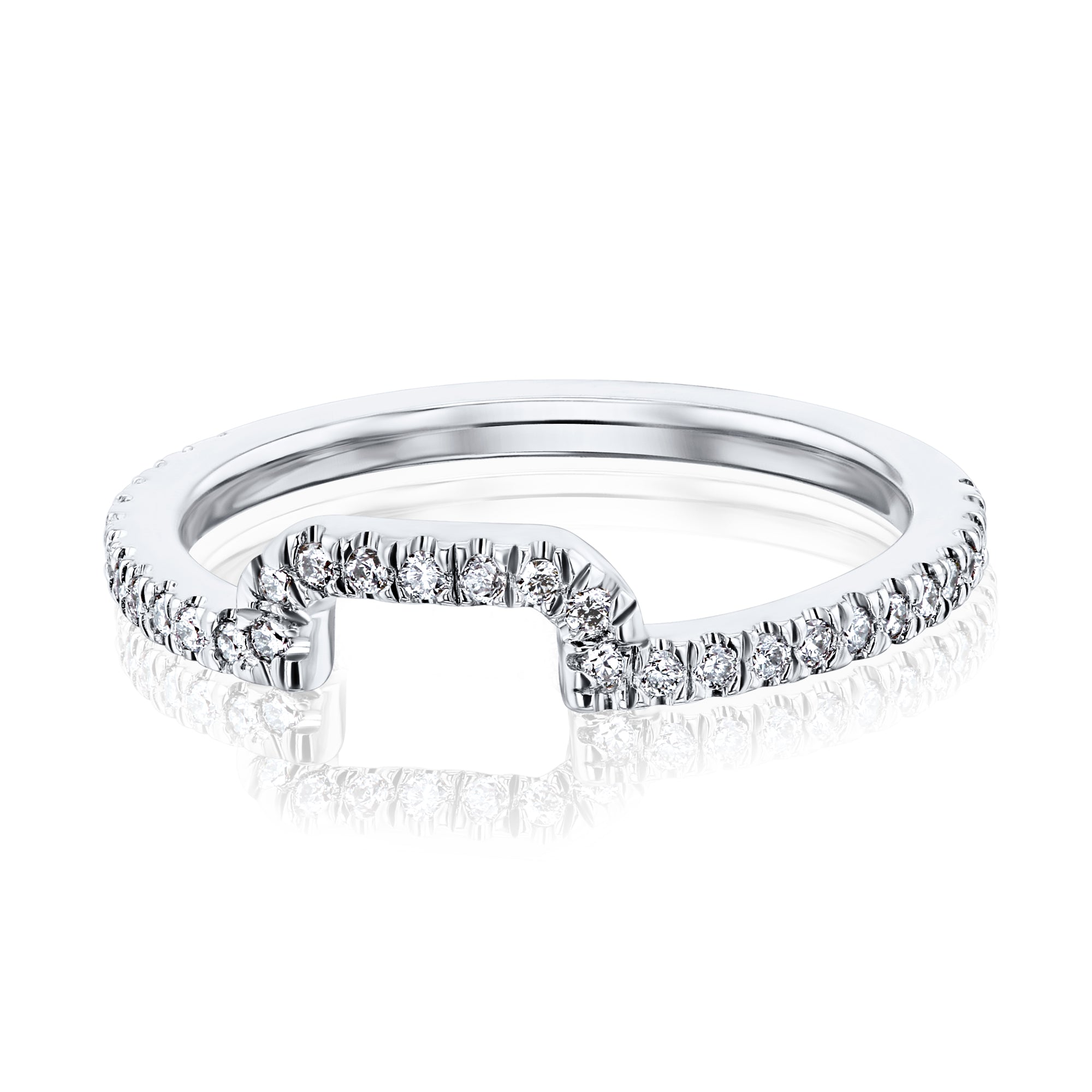 33 round diamonds grace the shank in a semi-eternity design. This U-shape matching band is so astonishing by itself and can magnify the beauty of the bridal set when paired with an equally elegant ring.