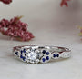 Antique Fashion Moissanite and Blue Sapphire Engagement Ring with Diamond Accents 1 1/5 CTW 14k White Gold