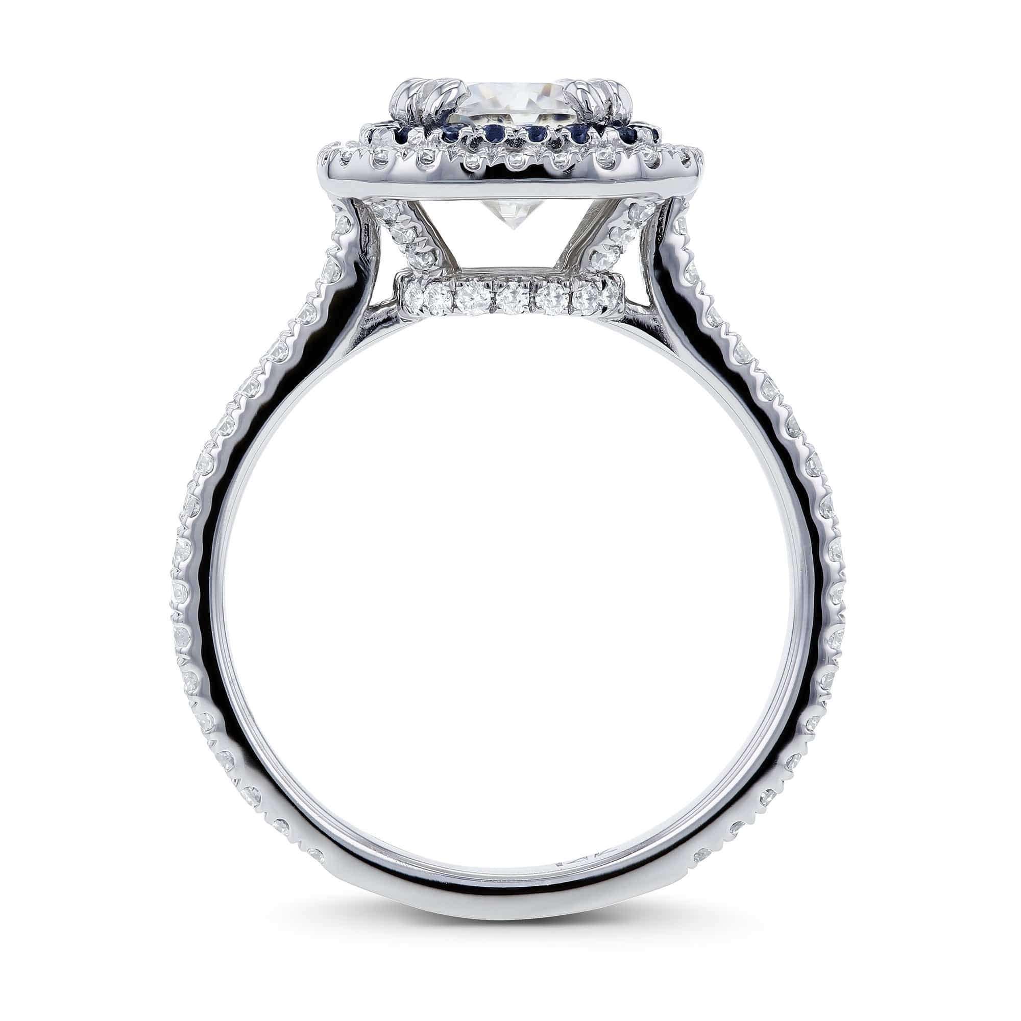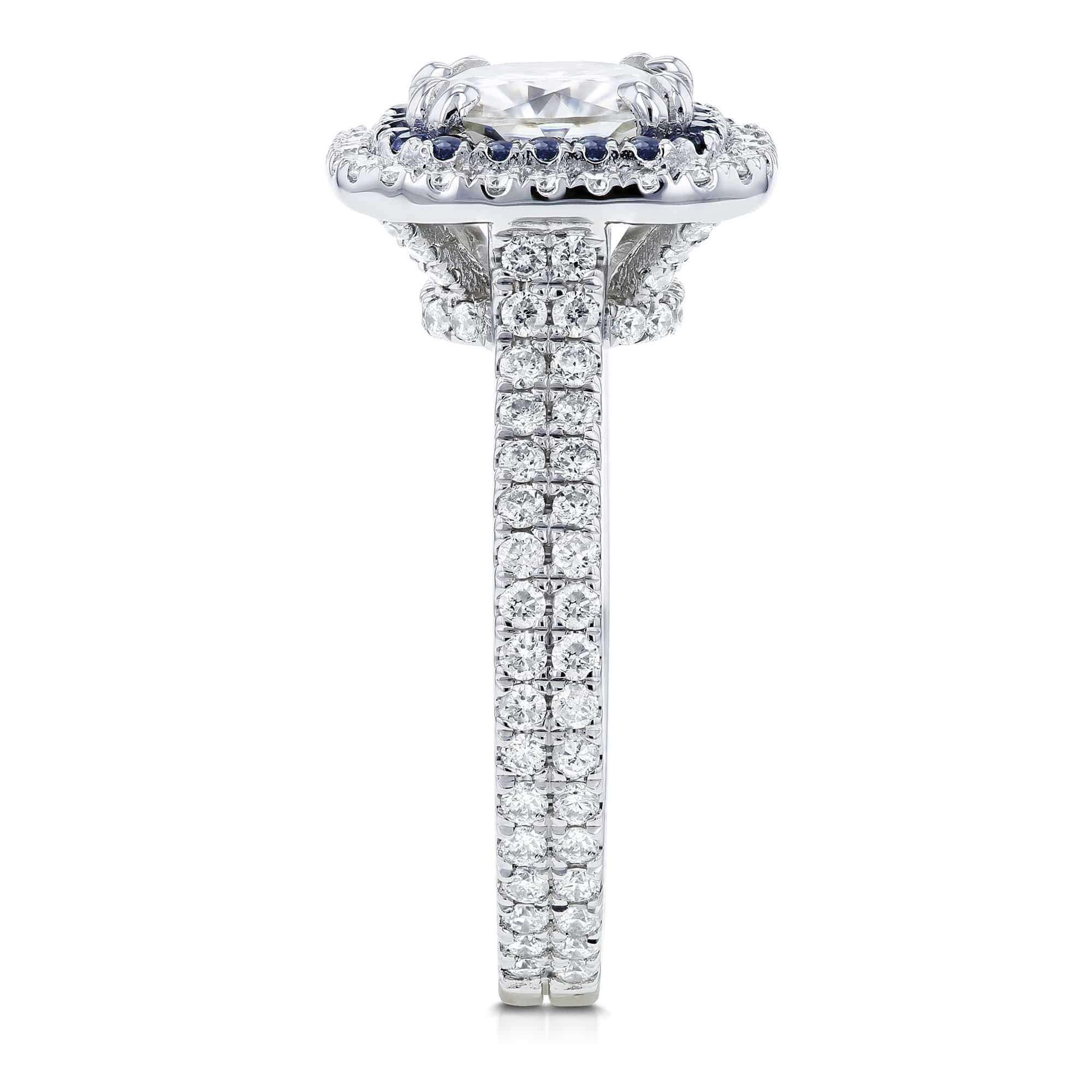 2 Carat Moissanite Sapphire Trim Halo Ring