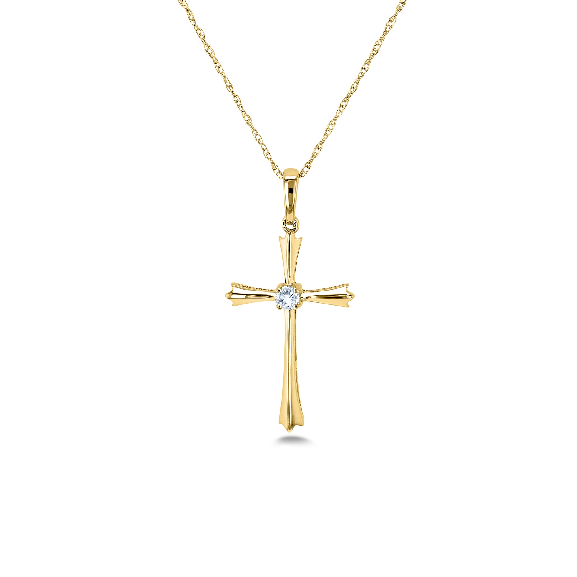Diamond Cross Pendant 0.05 Carat Round Solitaire in 10k Gold (18 Inch Chain)