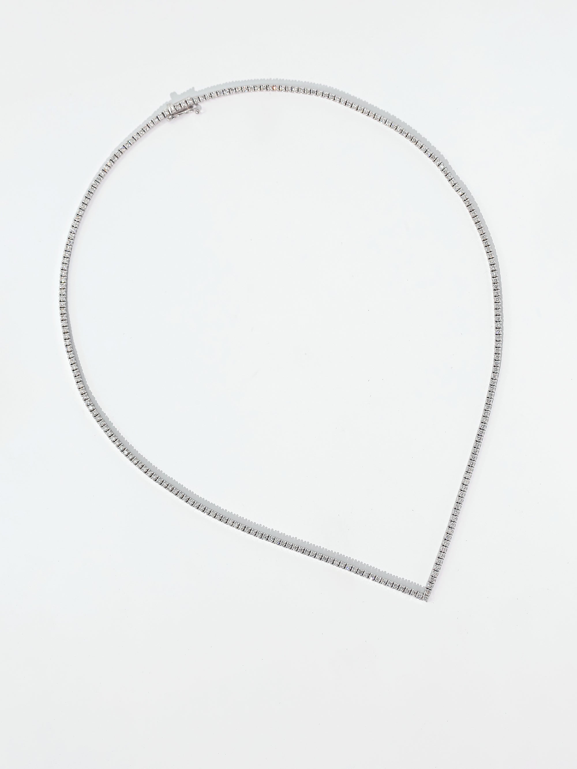 With vibes of a goddess, our Theia Diamond Necklace carries a whopping 233 lab-grown diamonds across a 14k white gold setting. The ravishing diamonds form to a delectable v-shaped centerpoint, affixed in form, while the rest of the necklace is semi-flexible to make for the perfect fit.