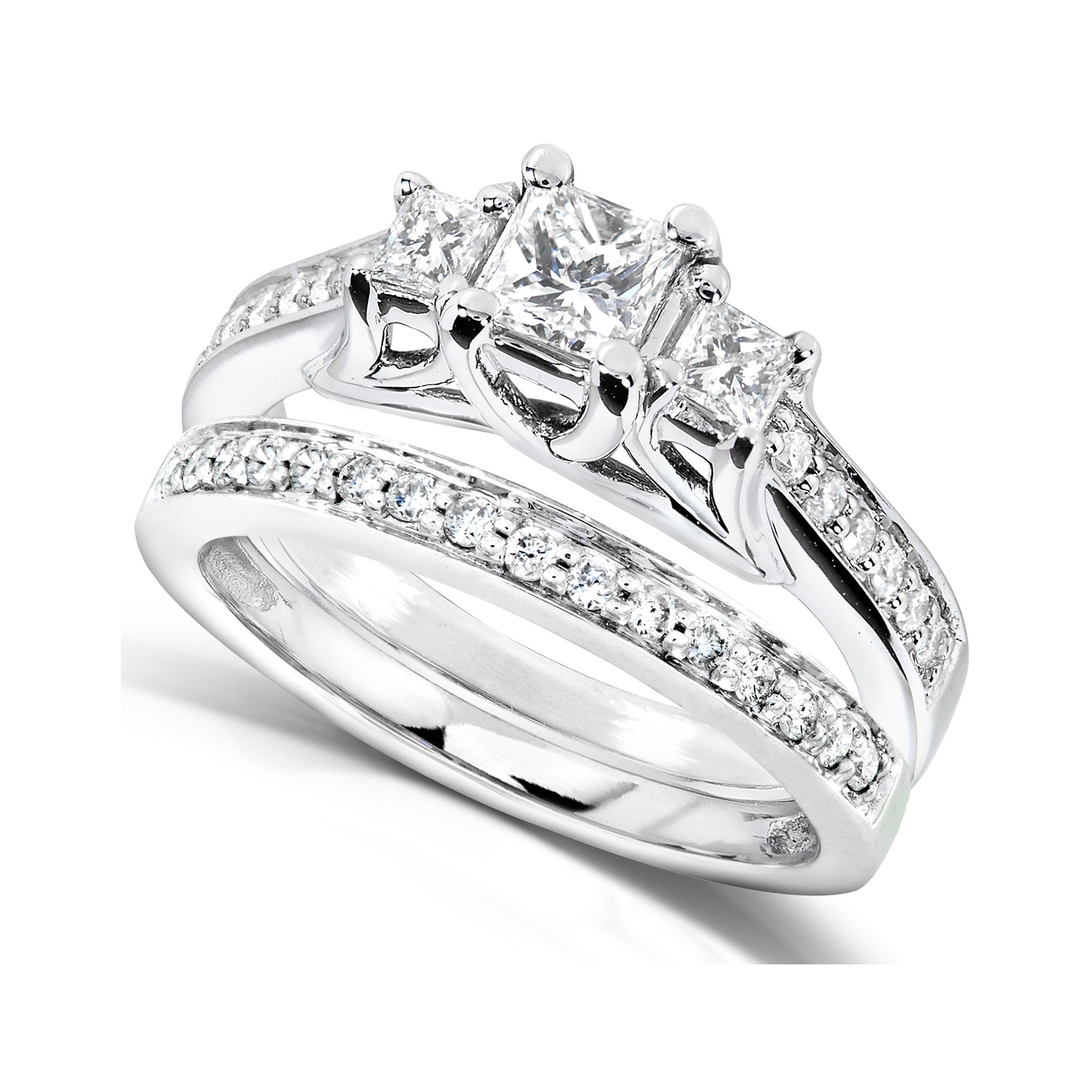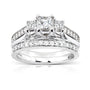 Three-Stone Diamond Engagement Ring and Wedding Band Set 4/5 carat (ctw) in 14k White Gold