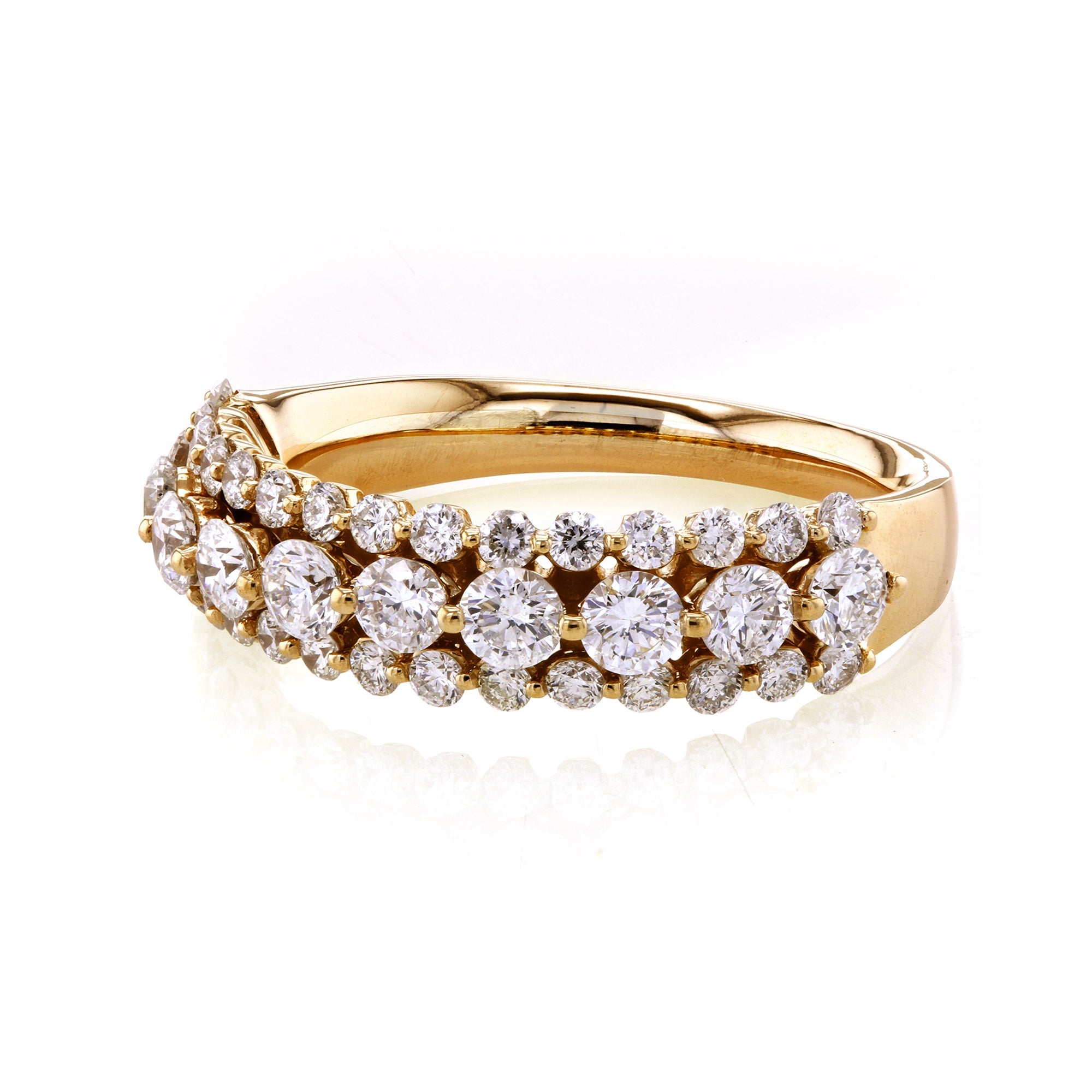 Three sets of real diamonds are sectioned into adjacent rows along this fashionable bubble band.