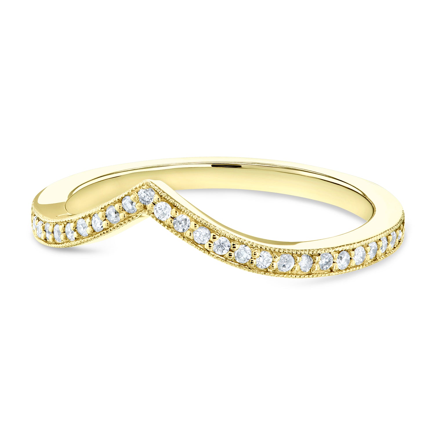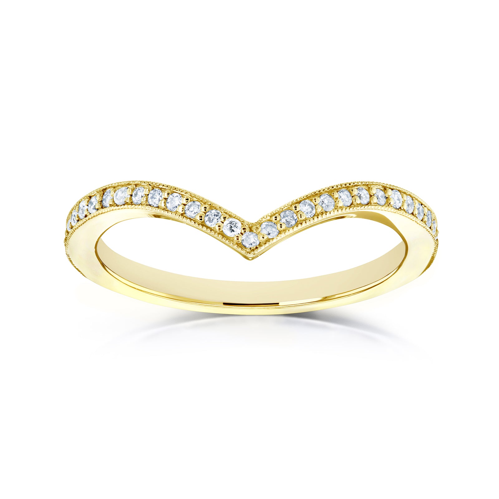Sparking white diamonds line this chevron wishbone band in solid 14-karat gold. Each diamond is graded at DEF color and VS clarity.
