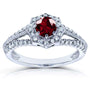 A star-like halo encompasses a round 5 millimeter center stone in 14-karat white gold on this fanciful engagement ring. The sophisticated look is accented by 48 natural white diamonds.