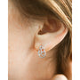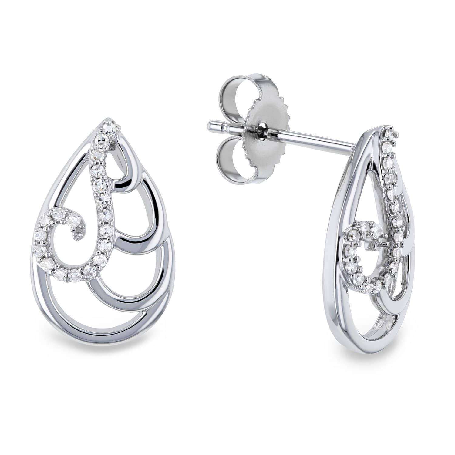 Real white diamonds enchant these gold earrings over a wispy retro design. Friction butterfly backings makes this pair easy to attach in seconds for instant glam and a touch of sparkle. Every diamond is conflict free and grown naturally from the earth.